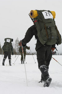 ب: صعود جناقي :سر اسکيها را از هم دور کنيد بنحوی که اسکيها به شکل جناق درآیند . سپس در حاليکه ازباتومها کمک ميگيرید یک پا را بلند کنيد و آنرا کمی بالا تر فرود آورید .سپس به همين ترتيب پای دیگر را بالا بياورید . صعود جناقی بيشتر در شيبهای تند تا اندازهای خسته کننده است . اگر از این کار خسته شدید ميتوانيد از روش صعود پله ای استفاده کنيد .